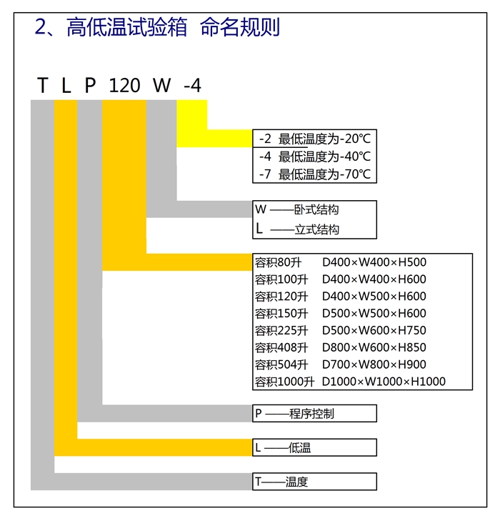 深圳市富易達儀器有限公司專業(yè)生產系列化、標準化的高低溫試驗箱等環(huán)境試驗箱、試驗設備,其中高低溫試驗箱TLP系列產品主體結構分成臥式和立式結構,這里對TLP系列高低溫試驗箱的命名規(guī)格進行說明,方便客戶選擇富易達儀器公司高低溫試驗系列產品的時候參考。