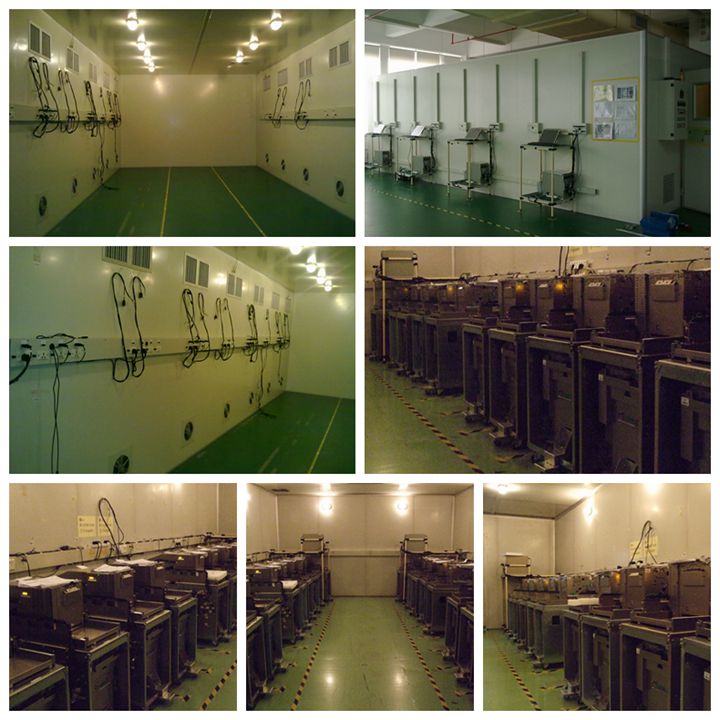 老化房4m×9.5m×2.2m, 2間單獨控制和運行 1)工作溫度:室溫~+70℃必須連續(xù)可調; 2)老化房庫體采用夾心彩鋼板; 3)內接20個AC220V電源插座、20個R232接口; 4)老化房1點溫度測試,4點溫度監(jiān)控 |