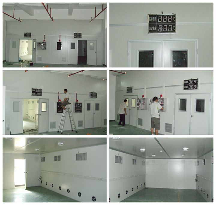 1、庫體五面采用雙面彩鋼保溫庫板(EPS 計算機色)拼裝而成,地面不做處理,接合處打密封玻璃膠,有效保證房間的密封性,室內放置產品老化車。