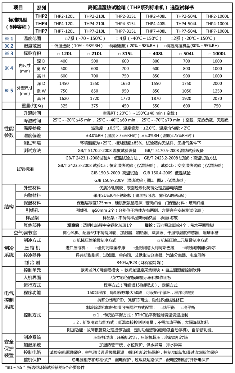 富易達FUYIDA-THP系列-高低溫交變濕熱試驗箱| 選型參數(shù)表