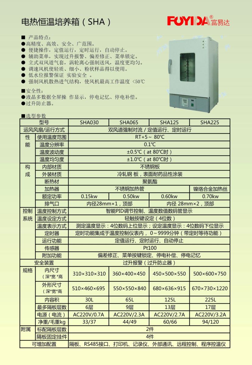 富易達(dá) SHA系列 電熱恒溫培